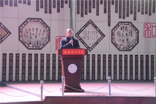 升旗仪式上,武威第十中学党总支书记邹立国进行开校动员讲话。他强调,新学期伊始要树立安全观念,做好安全教育,搭建安全平台。在开启新一阶段的学习生活的同时,要时时筑牢个人安全防线,珍惜时光珍惜生命。
