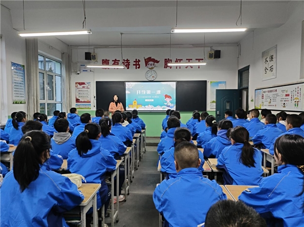 上午第一节课,由于金花老师为八(6)班学生讲授开学第一课,她勉励同学们珍惜学习时光,及时查缺补漏,在新的一年以饱满的精神面貌、充沛的学习活力、科学的学习方法开启心意阶段的学习。